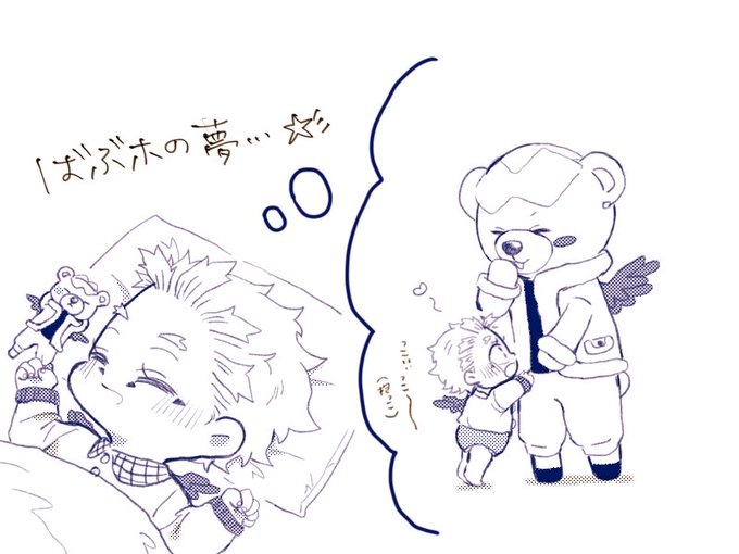 🧸ホちゃはにぃにだけどちっちゃいからばぶホのこと抱っこできないけど、夢の中で大きくなった🧸ホにたくさん遊んでもらって抱っこもおねだりしていたら可愛いと思った落書き。