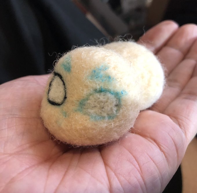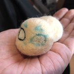 日曜日に絵付け体験したコーヒーカップ☕️ 私のオリジナルキャラ「プティートマト王」の絵柄にしました🍅 ねん獄さんがスッポリ入ります✨ カップの中にはミニトマト🍅 飲み終わればトマトが見える作りです🎶 #羊毛フェルト #ねん獄さんかわいい