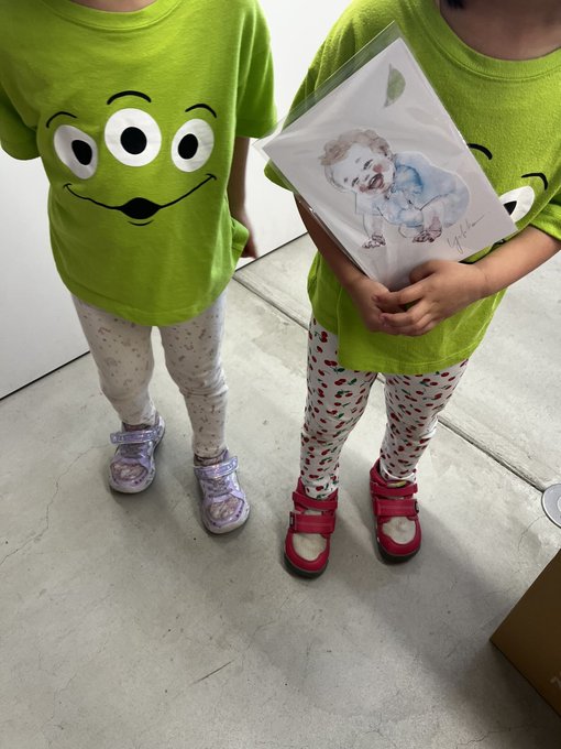 以前絵を描かせていただいた三つ子ちゃんとお母さんお父さんが展示を見に来てくださいました😭✨ 大きくなった三つ子ちゃんを見れて本当に嬉しかったです、でもお母さんとお話して多胎児のご家族が笑顔で大きくなれることは当たり前ではないと改めて感じました。(続) @itikonikomiko twitter.com/yukko_96/statu…