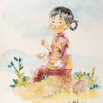 1 4 みず色鉛筆で描いた、幼い頃の娘です。 冬の入口っぽいけど。☺️💦 #あなたのみず色の作品を見せてください #風の子供 #中田喜直 23/05/29 21:38