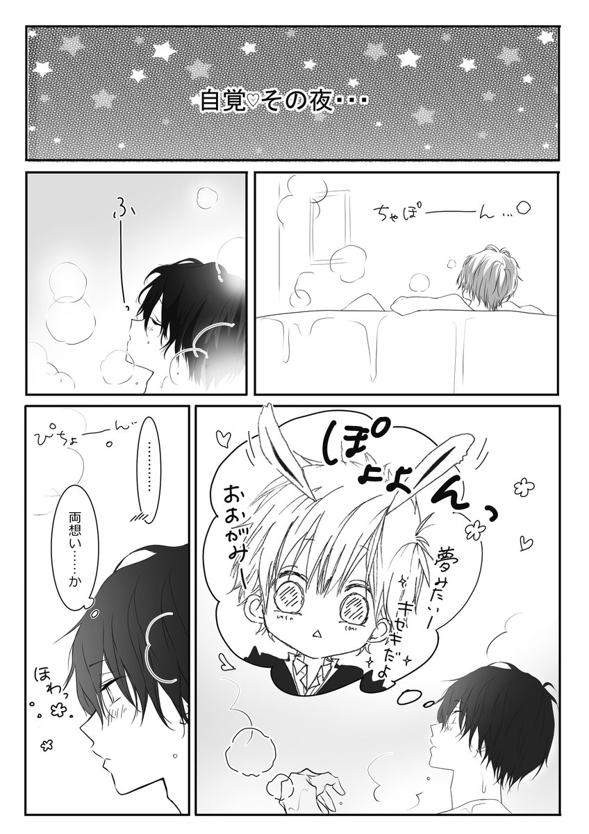 始まりましたね!創作BL大豊作まつり!!!(*^▽^*)💕今回は私もむじこい(2)🐺💓🐰を持って参加させていただいてます✨ ちょうどこないだ投稿した「その後の夜」の元にした「キスマ事件後の夜」の回からの収録です😊 少しスレッドにつなげます🐺🐰 よろしくお願いします(*^^*) #創作BL大豊作まつり
