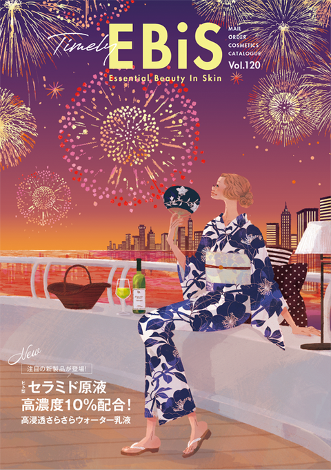 \WORK/ エビス化粧品さん『TimelyEBiS/Vol.120』の表紙を担当しました。マジックアワー時の花火をバックに久しぶりに浴衣を描きました。会員のみなさま、どうぞよろしくお願いします。 ebis-cosme.co.jp