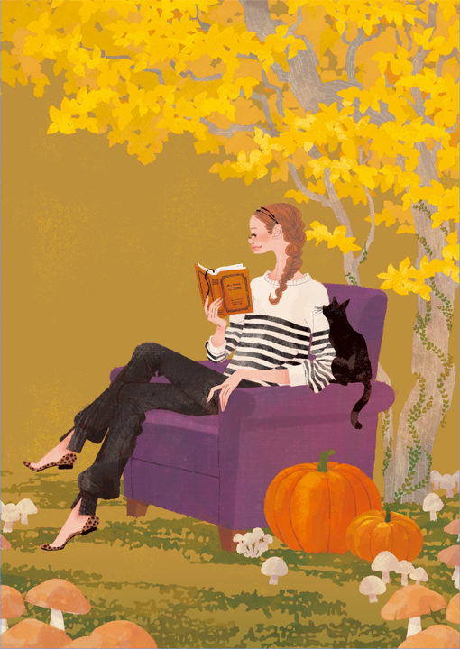 \お仕事/ レギュラーで担当しているエビス化粧品さんの会報誌『TinelyEBiS』の秋号(vol.121)の表紙を描きました。庭や野外にソファを置いて読書をする、というシチュエーションに憧れているので妄想を込めて..(なかなか出来ませんけども)関係各位に御礼申し上げます。ebis-cosme.co.jp