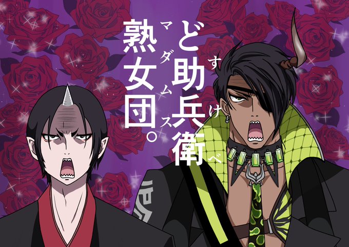 エラーだの仕事だのとたたかい·····なんとか·····間に合った····· 某ミュージシャンのお衣装オマージュです 魔人さんに着て欲しかったんです····· このお祭りの中だから許して欲しいです····· #ホロスタハロウィン2020 #オウ画