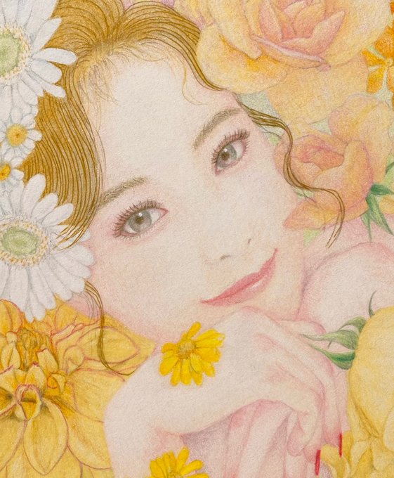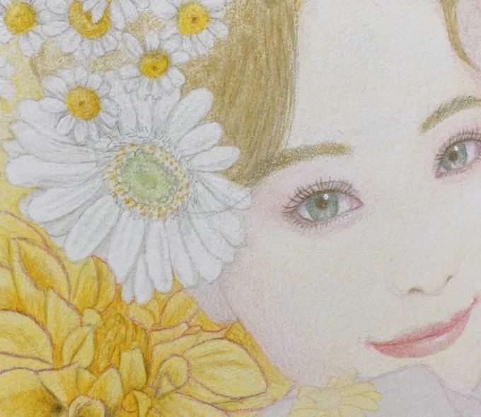 0 22 新作をいくつか同時進行中。 まだ先の展示ですが描き溜めていかないと。 めずらしく黄色系の作品🌼 描いていて気持ちいいです♪ #色鉛筆画 #美人画 #黄色い花 #新作 22/03/24 18:39