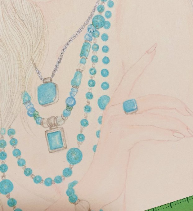 0 26 頑張ってターコイズのアクセサリーを描いています。 アクセサリーは私物です。 私の誕生日石はターコイズです✨ #色鉛筆画 #ターコイズ #誕生石 #アクセサリー 22/06/12 18:01