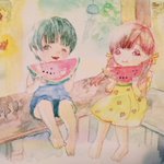 7月は色んな表情のディスコ君を描けました ドーンと真ん中にみゅう君✨ 水彩も色鉛筆もどっちも楽しい今日このごろです。 リクエストもいただき、楽しく取り組むことができました(*´ω`*) #今月描いた絵を晒そう #ほしのディスコ さん
