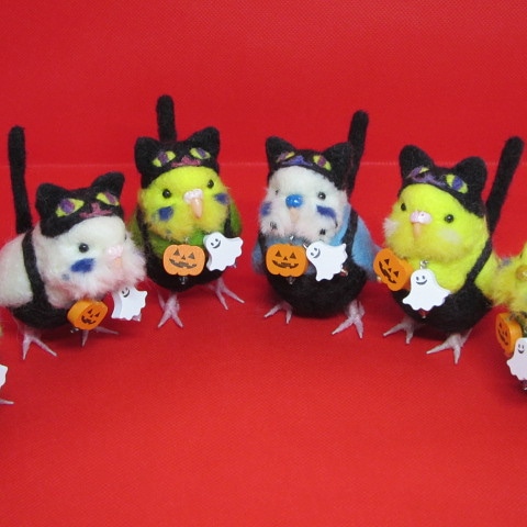 新作ハロウィン限定黒猫着ぐるみインコちゃん只今出品致しました🐤💕ゆこりん工房yukorinshop.com #羊毛フェルト #セキセイインコ #ハンドメイド #インコグッズ #ハロウィン