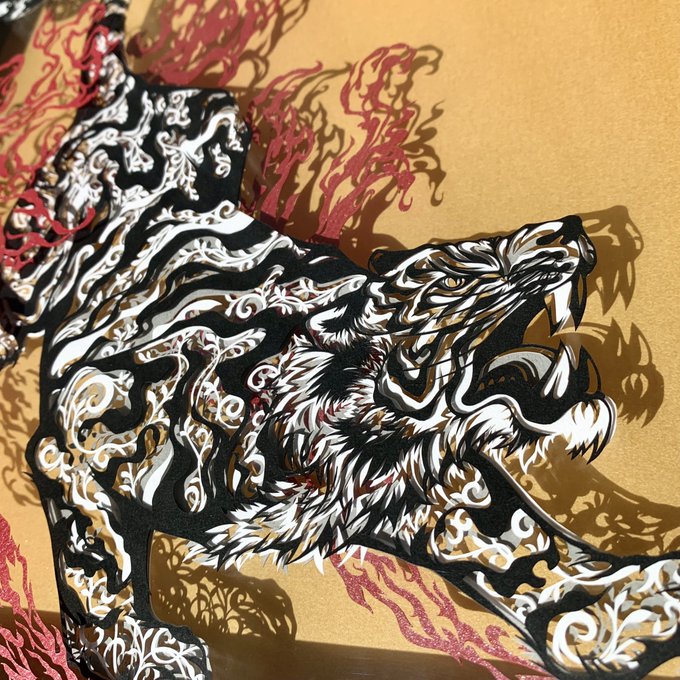 #誰か優しい人が拡散してくれてフォロワーさんが増えるらしいけど別に増えなくても良いから見るだけ見て欲しい 久し振りに大きめの作品が完成したので見て欲しいです┃ω・`)全体像はまた後日改めて… #重ねる切り絵