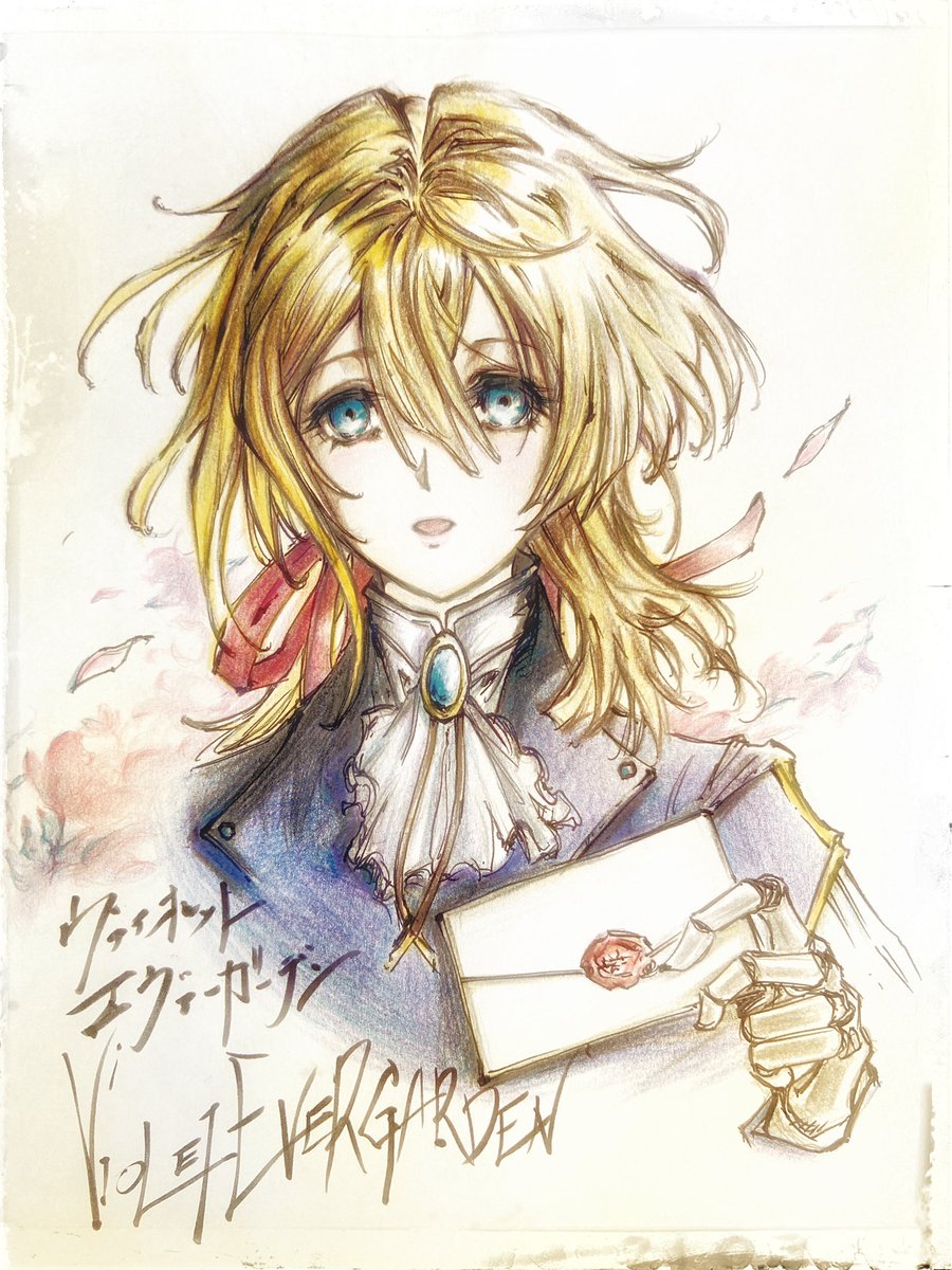 色鉛筆画ヴァイオレットエヴァーガデン💐 原稿が、涙で職務原稿が書けない! 本日の誕生花は月下美人で、儚い美しさということで昨夜の作品にはピッタリ さて今日これから占いでは🎑 誠実さを忘れずに行動すると良さそうですよ🌹幸運を🌹 #ヴァイオレットエヴァーガーデン #イラスト #色鉛筆画