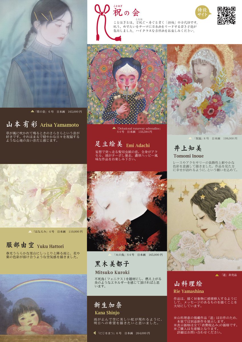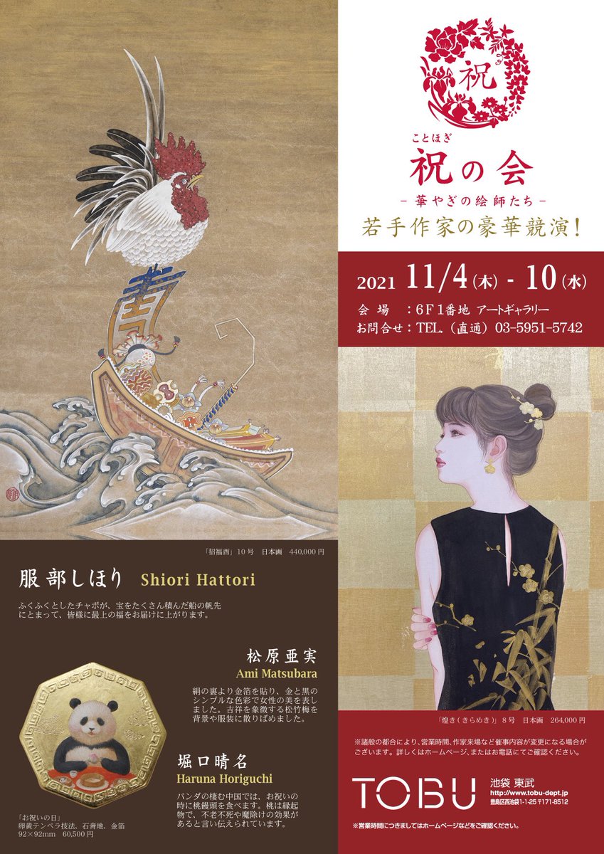 展覧会のご案内です。 【 祝 ことほぎの会ー華やぎの絵師たちー 】 *11/4(木)-11/10(水) *池袋東武 美術ギャラリー *kotohogi2021.jimdofree.com 私は3点出品します! 春光うららかな里山にしっとりと降る雨と花や葉の色彩が溶け合うような空気感を描きました。 ご覧いただければ幸いです。
