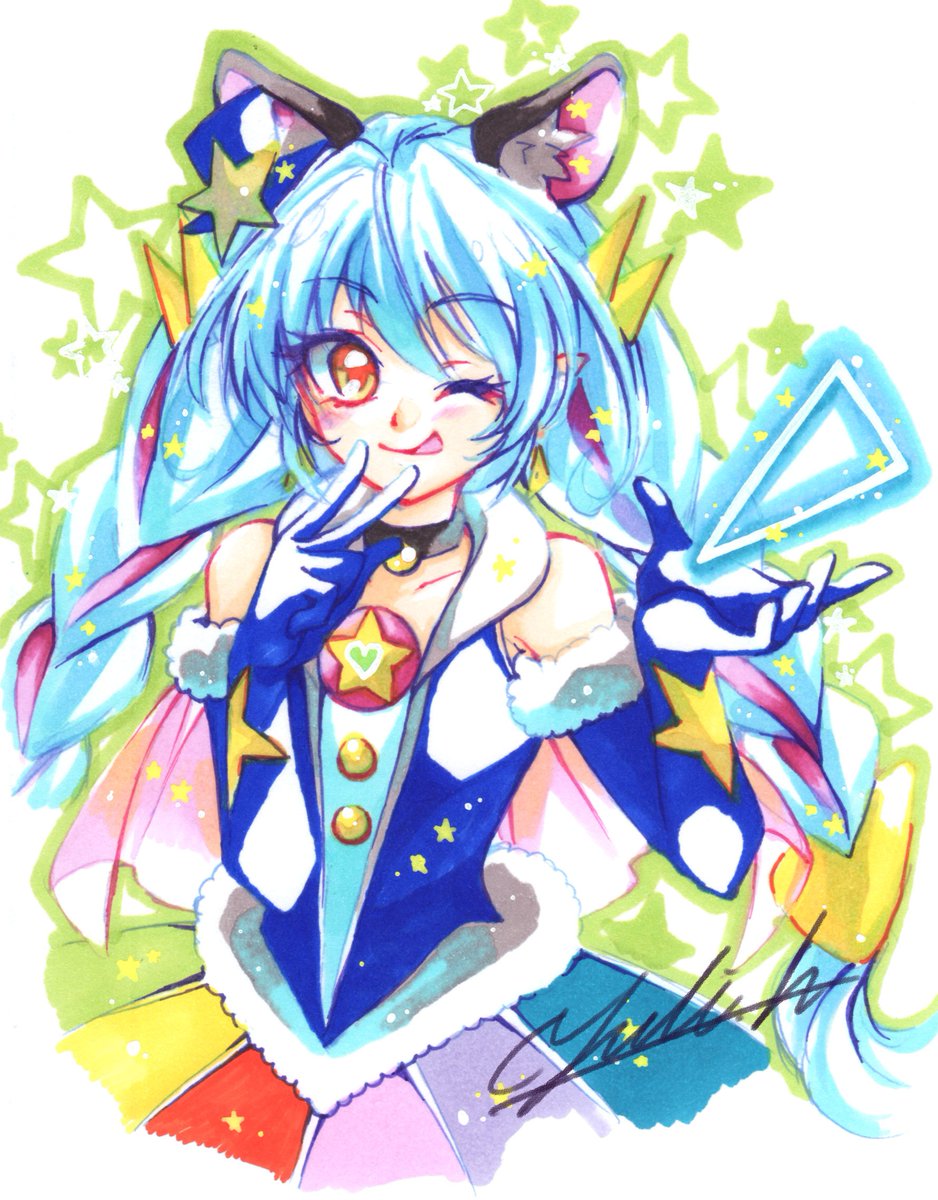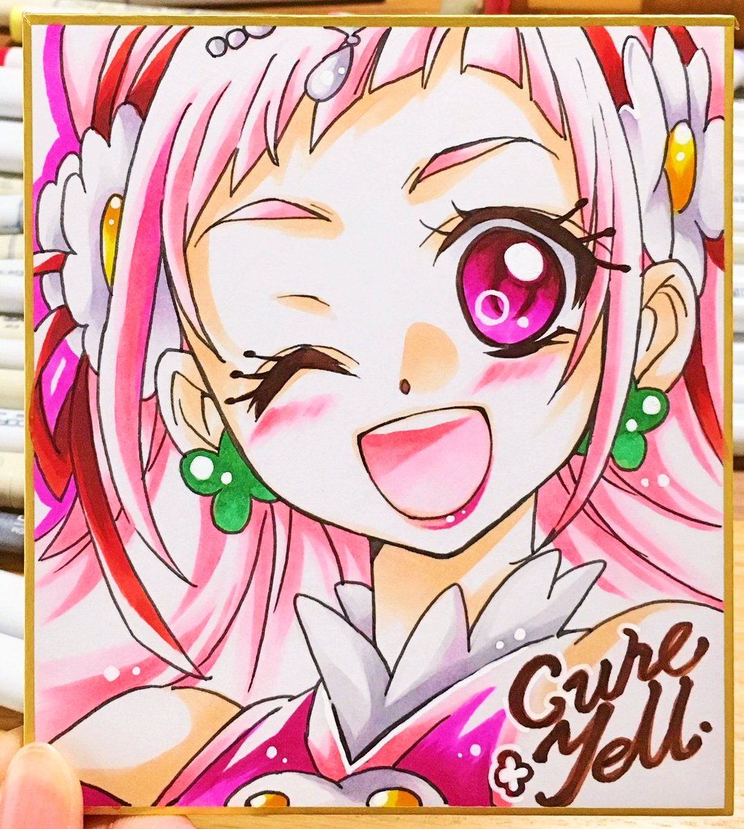 #プリキュア全員集合合作2019 恐れ多くも、キュアコスモを担当させていただくことになりました。平野友梨と申します!取り急ぎ、100均コピックの初描きコスモでご挨拶をば☆(*・ω・*)☆ 「みなさま、よろしくにゃん★」