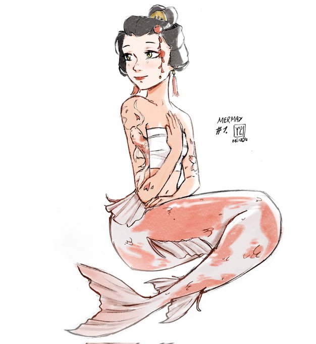 A little late, but Day 1 of the Mermay!! 🖌Day 1: Geisha #illustration #mermay #artchallenge #mermaid #charactercues