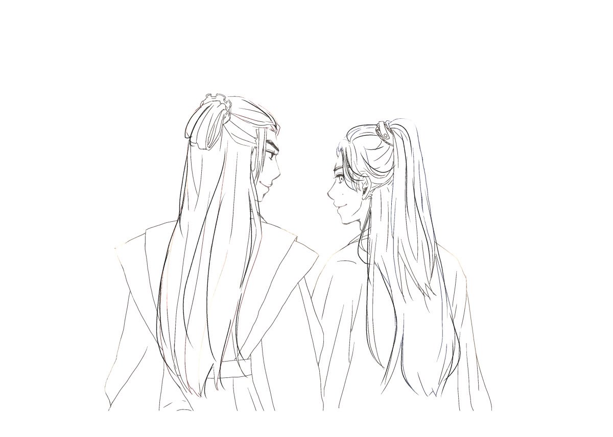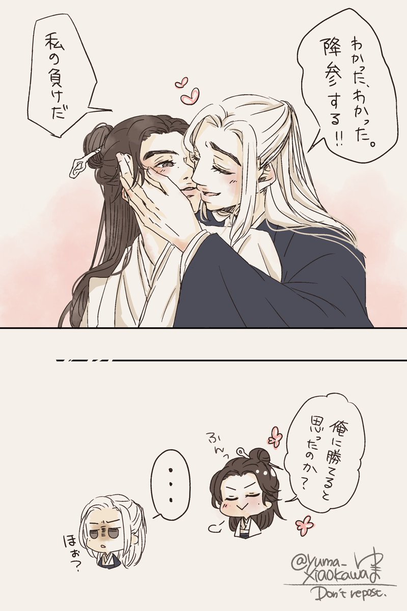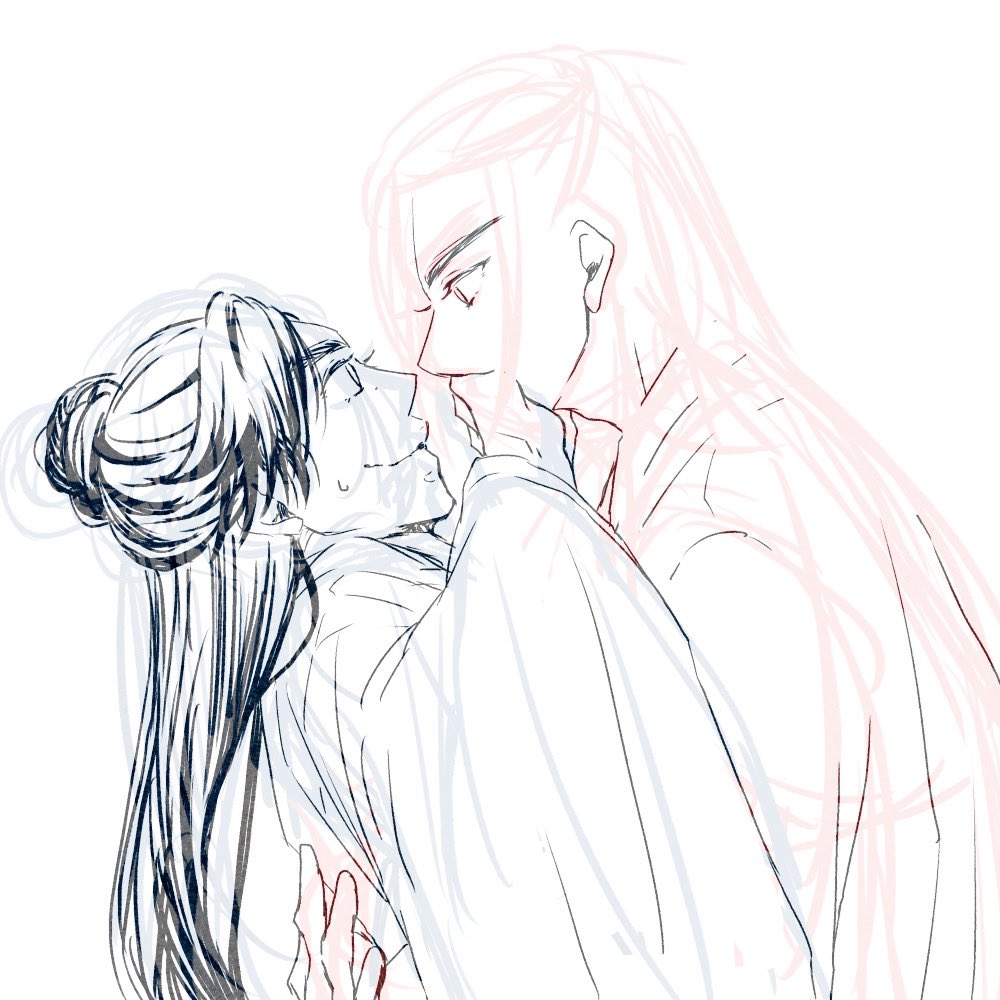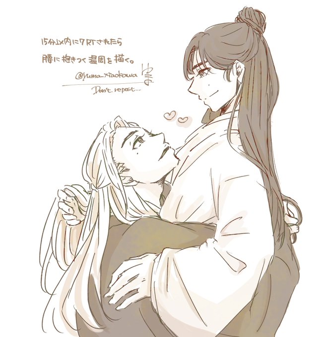 描きました😌🙏(温周) 34話の抱きついてお腹に耳当ててる老温のとこめちゃくちゃ好きなんだけど、そこの阿絮が老温の髪を後ろに流すのがどちゃくそ好きなんですよね☺️☺️☺️☺️ twitter.com/yuma_xiaokawa/…
