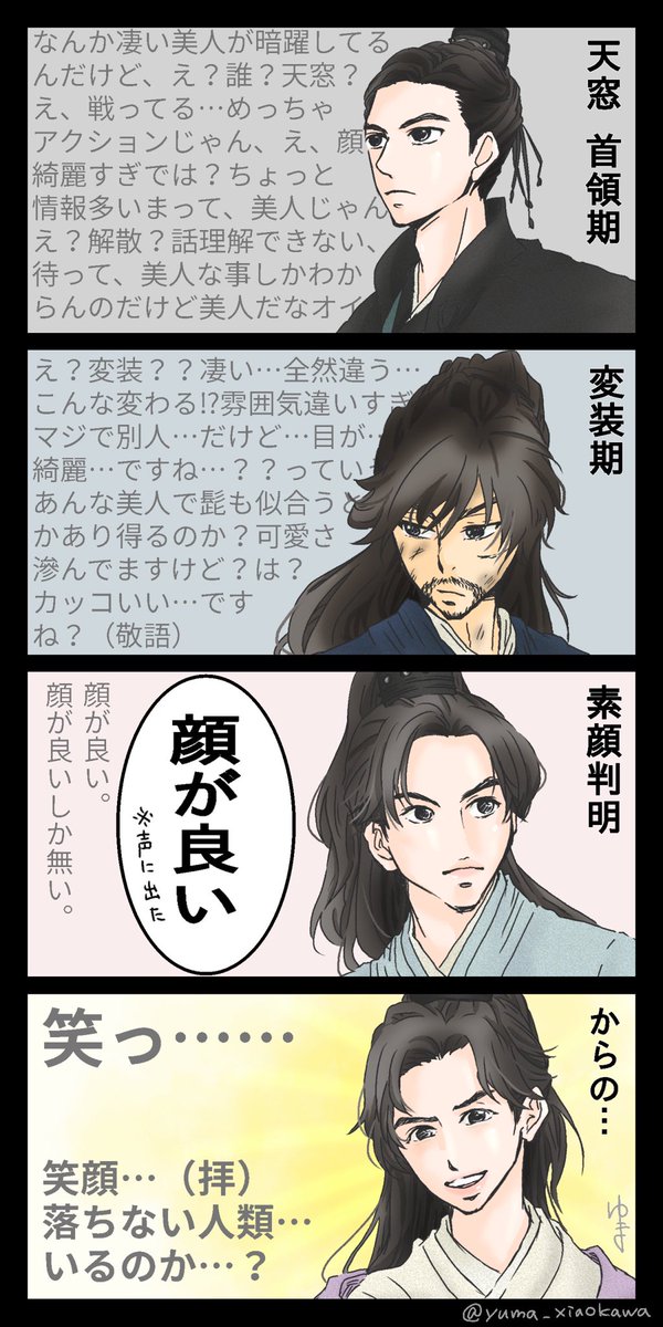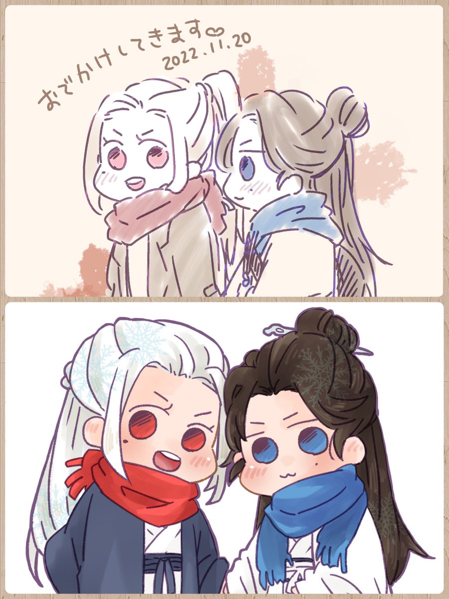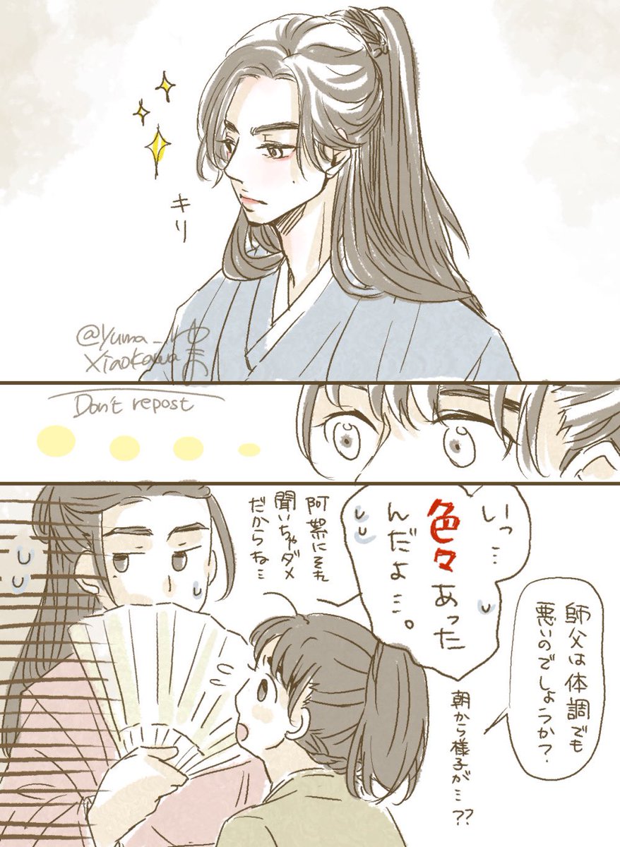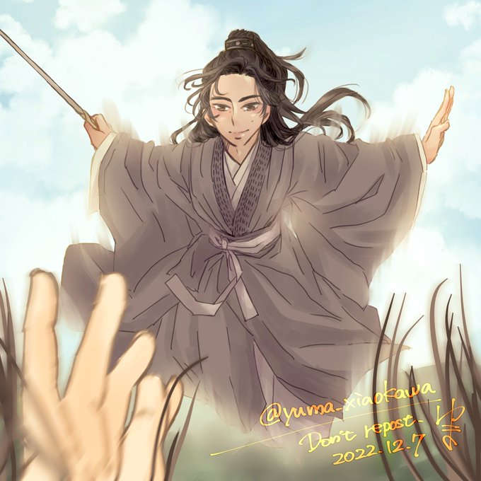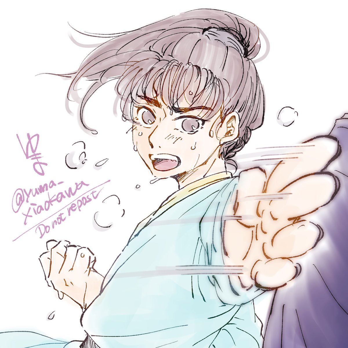 描きました😌🙏(温周) 34話の抱きついてお腹に耳当ててる老温のとこめちゃくちゃ好きなんだけど、そこの阿絮が老温の髪を後ろに流すのがどちゃくそ好きなんですよね☺️☺️☺️☺️ twitter.com/yuma_xiaokawa/…