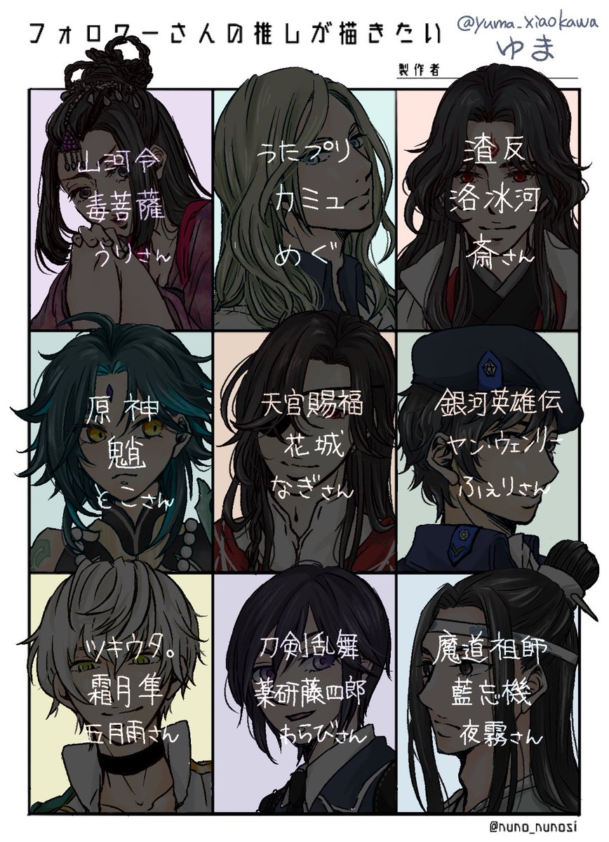 #フォロワーさんの推しが描きたい 久しぶりにカラフルな配色だったのでカラーにしました☺️✨✨ 反応して下さった皆様ありがとうございました‼️知らない子や初描きの子ばかりなので解釈違ったらごめんなさい😂 楽しかったー💕 ご要望があっていつでも良ければ他にも描きます😚