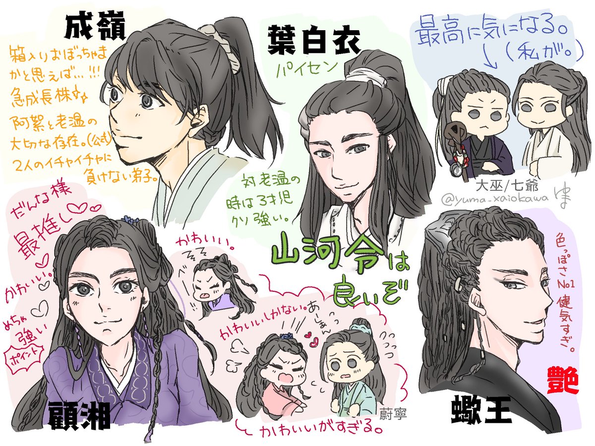 ちゃんと色塗ったもの少ないので…💧 人物以外は色で直に描いたやつ。 二つ目のはワンドロなので、簡単なアタリ→何となく線画→太めの筆でガリガリ塗る→老温の髪は色で直描き、の時短でほぼ1時間で描いた筈。 #皆さん線画と塗った後を見せてください