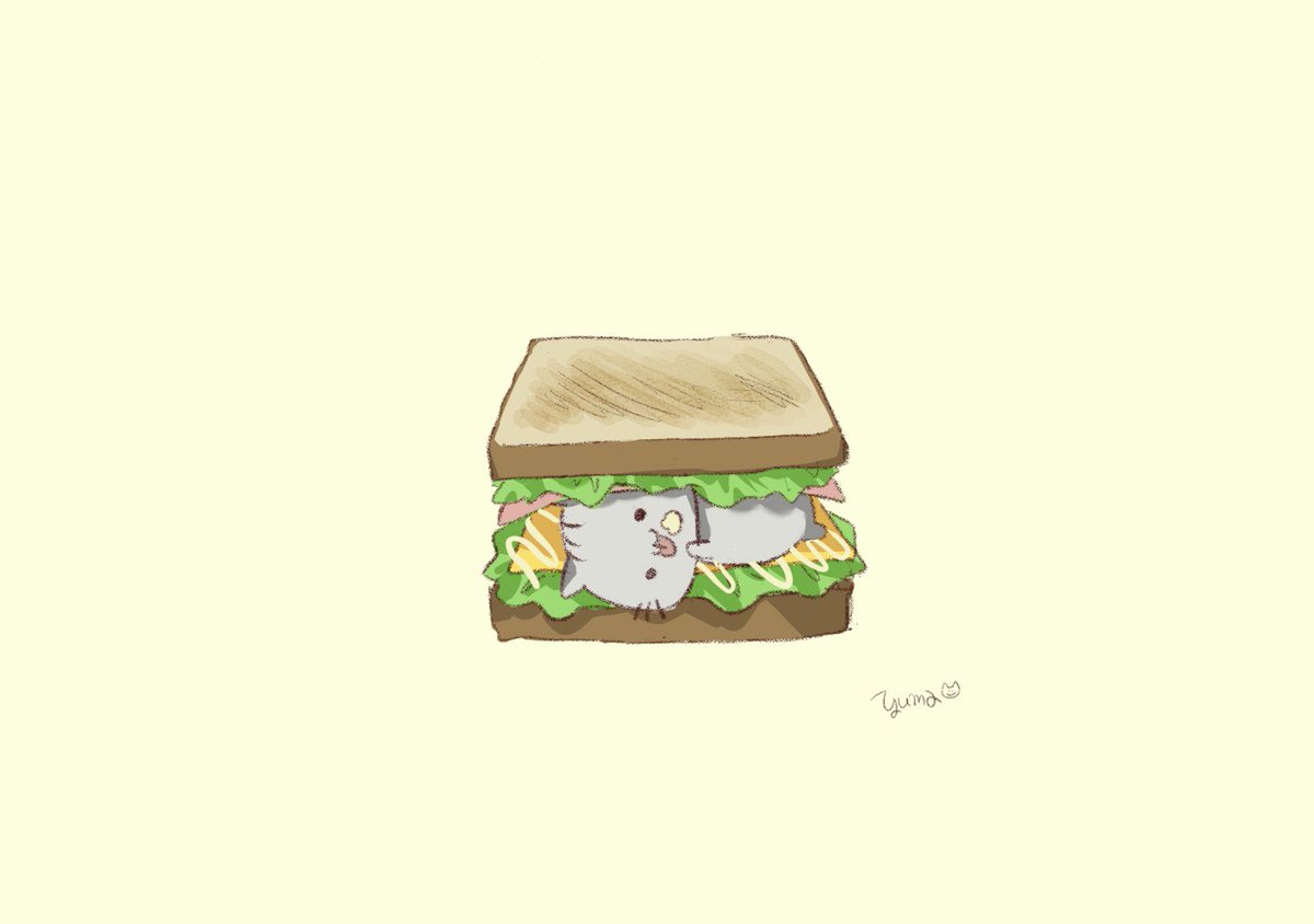 4 89 意外と心地良いにゃ…🐱🥪 #サンドイッチの日 #イラスト #ここねこ #イラスト好きさんと繋がりたい #猫 23/03/13 19:12