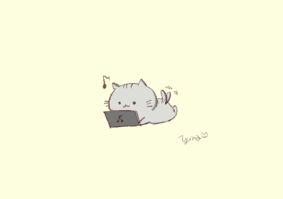 動画見るの楽しいのにゃ♪🐱 #ここねこ #イラスト #ゆるいイラスト #イラスト好きな人とつながりたい #猫