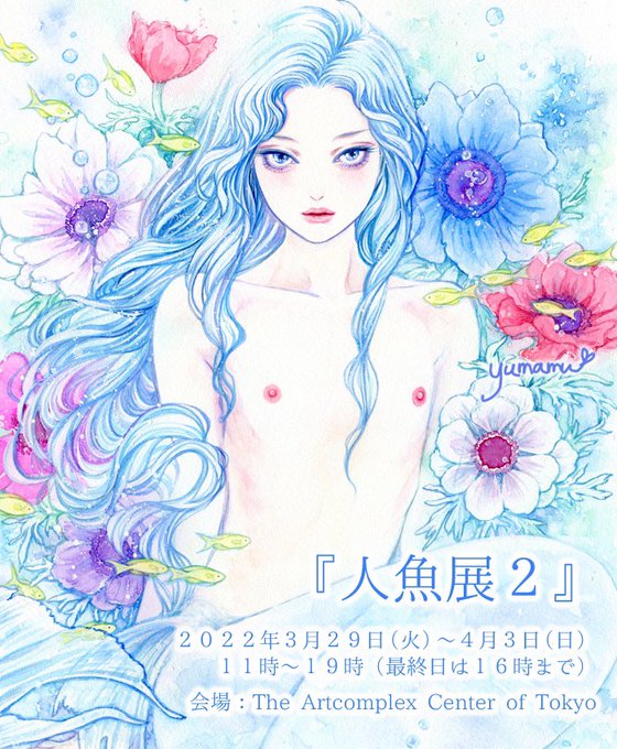 アートコンプレックスセンター様(@gallerycomplex )で『人魚展2』開催中です🐠✨ よろしくお願いします(*u_u*) 『人魚展2』 2022年3月29日(火)~4月3日(日) 11時~19時、最終日は16時まで #絵 #イラスト #水彩 #ゆまむ絵