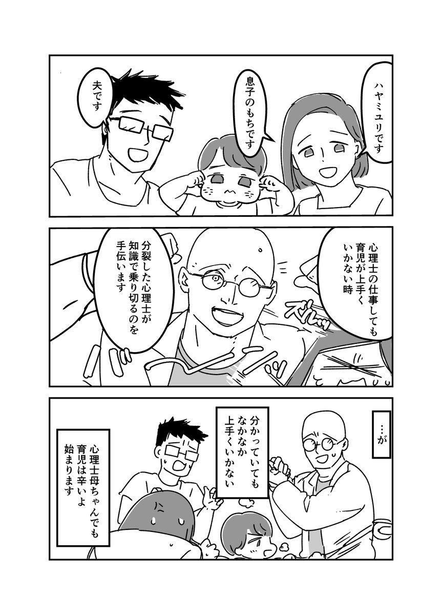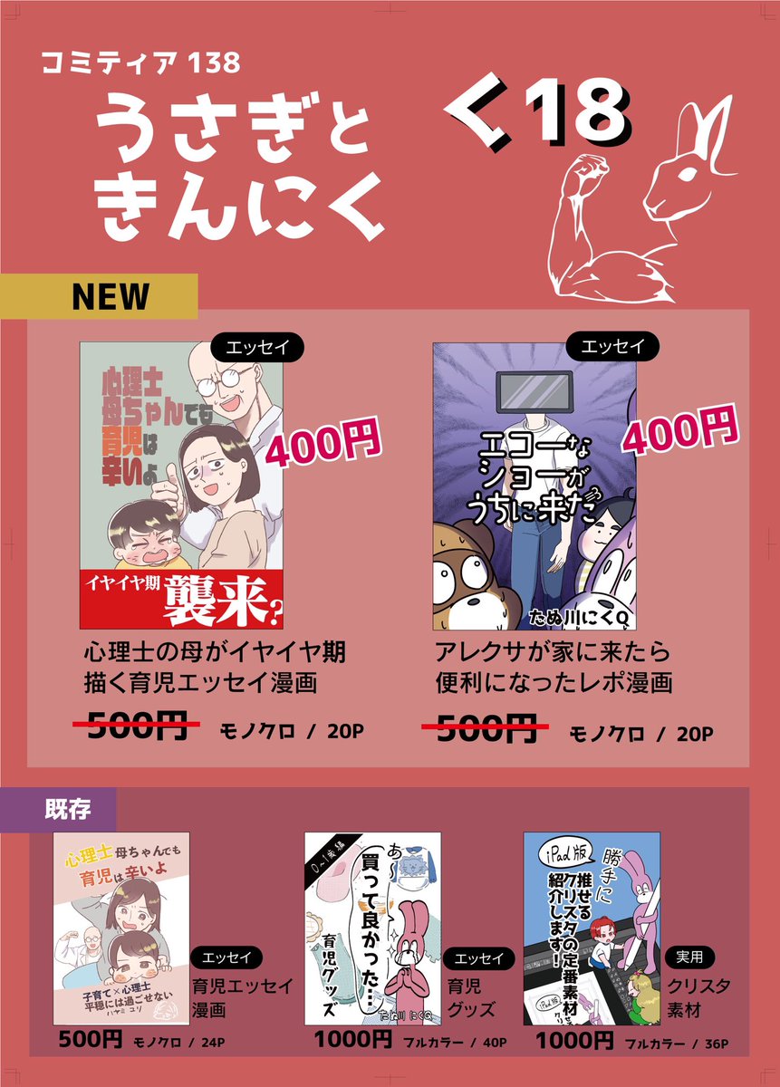 本日コミティア「く18b」サークル名「きんにくじむ」にてプレイヤイヤ期の育児×心理のコミックエッセイを新刊で出します!! 分裂したもう1人の私(スキンマッチョ)が関わり方を解説します! #コミティア138お品書き #コミティア #コミティア138