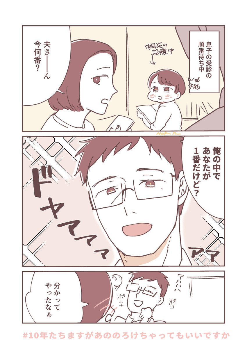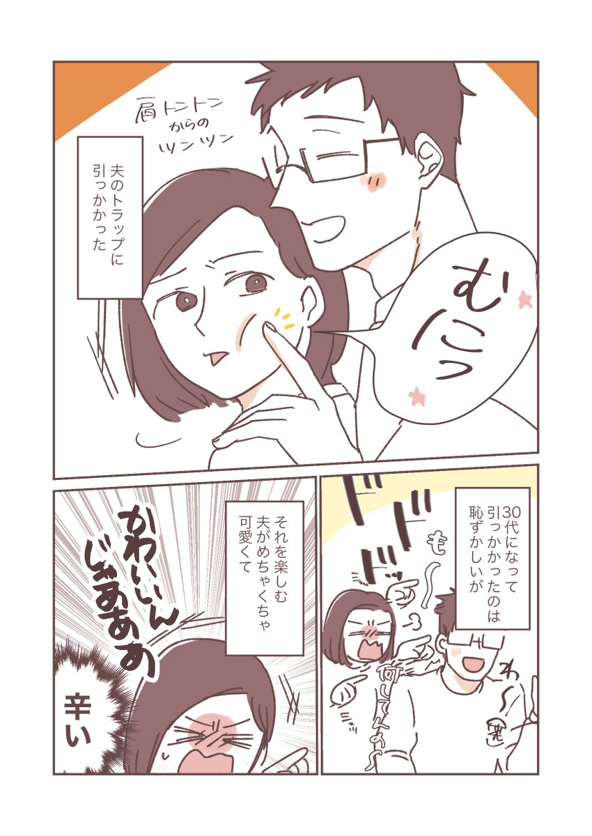 肩ぽんぽんして振り向いた相手の頬ツンとするトラップの名前が分かりませんが、それを30歳超えてからやる夫の可愛さを世に知らしめたい。 #10年たちますがあののろけちゃってもいいですか #10年惚気 #てんのろ#漫画が読めるハッシュタグ
