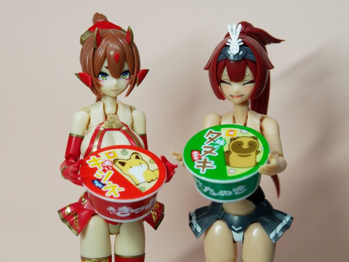 「赤いキツネと緑のタヌキぃ~」 コトブキヤさんはきっとこれがやりたかったに違いない。 #メガミデバイス #コトブキヤ