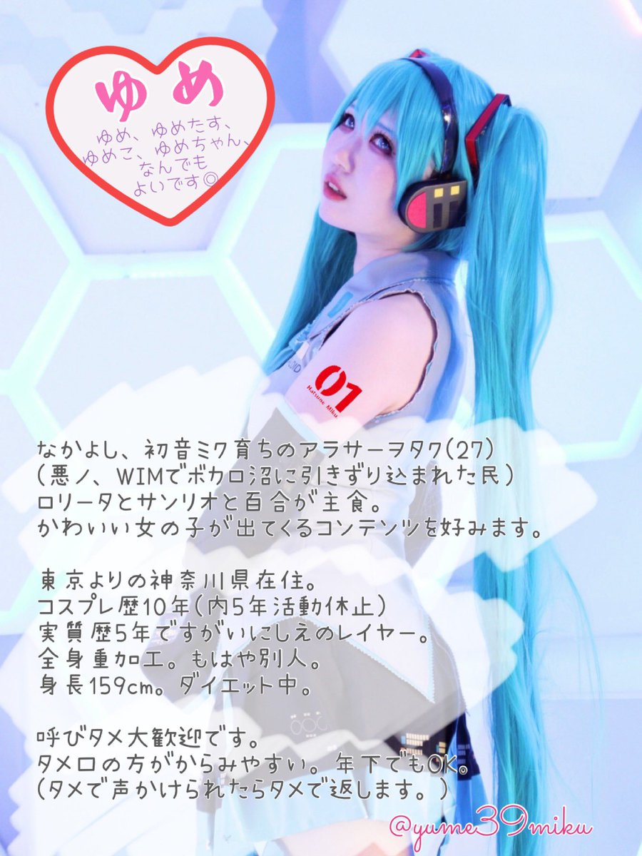 久々タグします! 27歳出戻りコスプレイヤー。 気軽にリプライし合えるお友達や 関東圏内でイベント一緒に参加したりスタジオで撮影したりできるお友達募集中です・:*+.\(( °ω° ))/.:+ #夏休みはフォロワーさんが増えるらしい #コスプレイヤーさんと繋がりたい