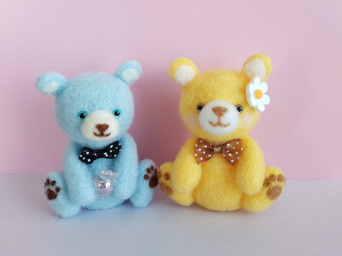 並べて撮影📷 うん。 上手に出来たと自分を褒めたい🥺♥ #ハンドメイド #くま #羊毛フェルト