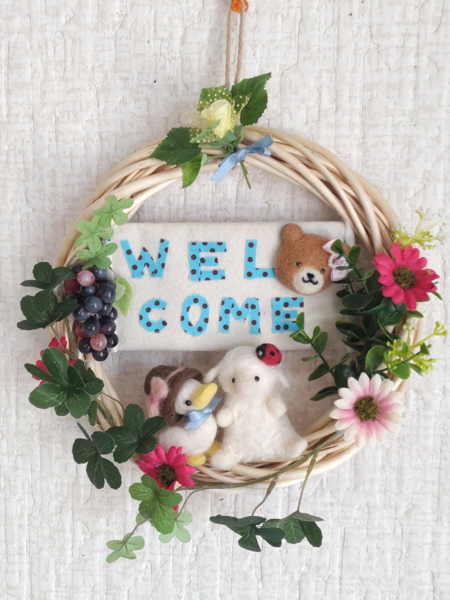 1 3 前に作ってたこの子達を、リースにのせました😊 #ハンドメイド #羊毛フェルト 23/05/04 11:40