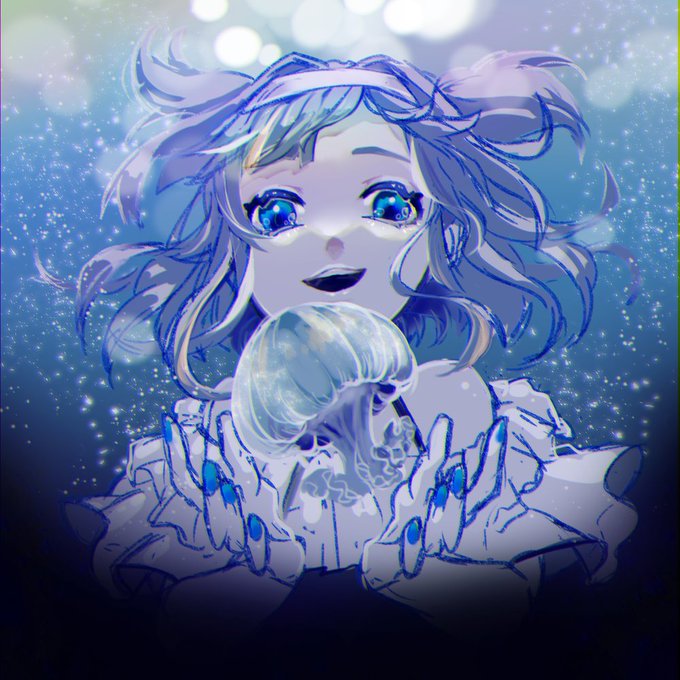 7 38 ほとんどクラゲ描いてタイムオーバー 夏と海がよく似合うオンナ #ぽんぽん絵いと #ワンドロ #クラゲ 22/07/20 03:29