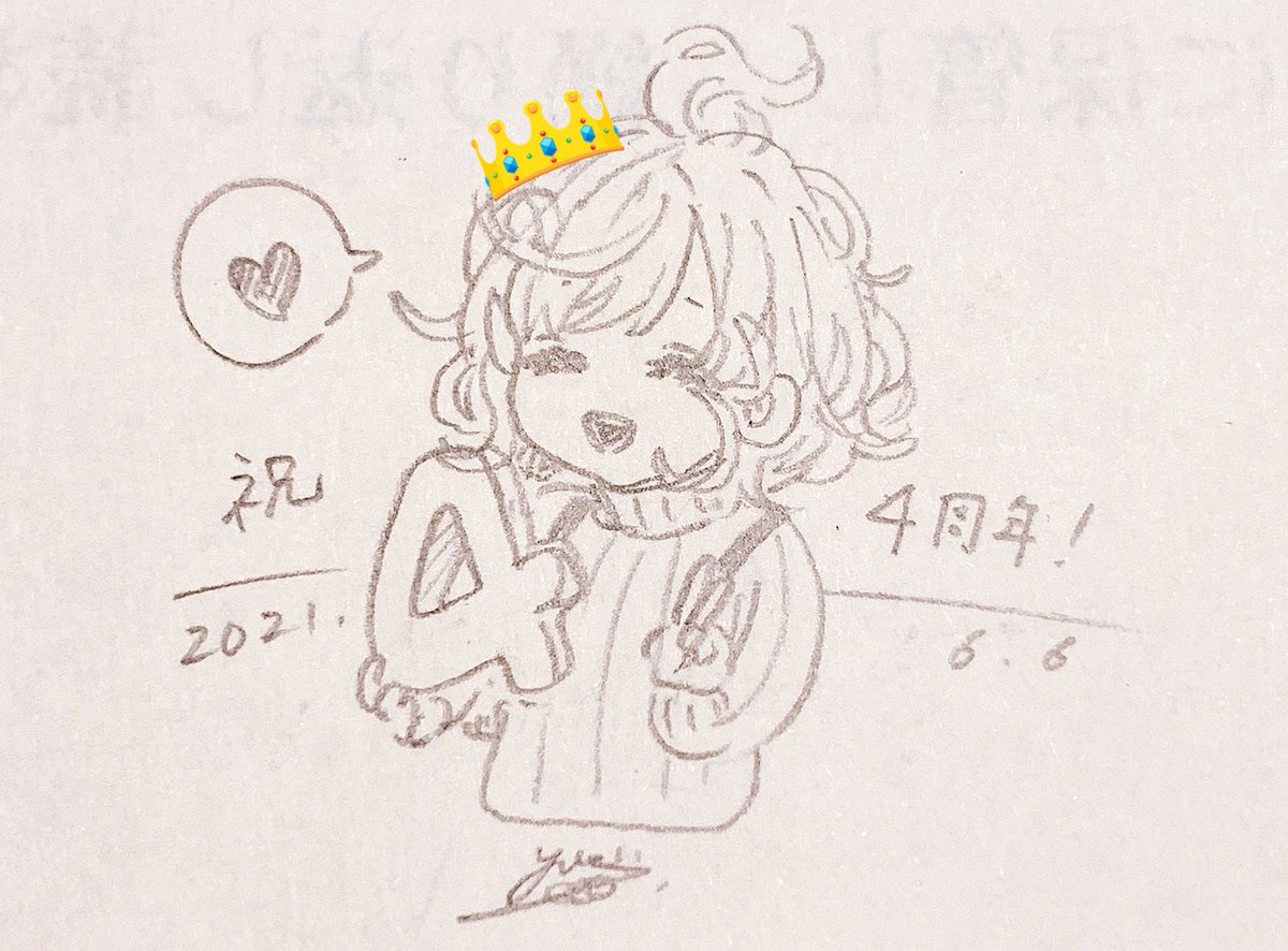 多分寝ちゃうから。数十分お先に、祝4周年シノアリス ✨🤗✨ 多忙なもので、簡単な5分クオリティのピノちゃしか添えれないけれど、おめでとうございます🥂🍡 #呪4周年シノアリス生前葬 #シノアリス_ファンアート
