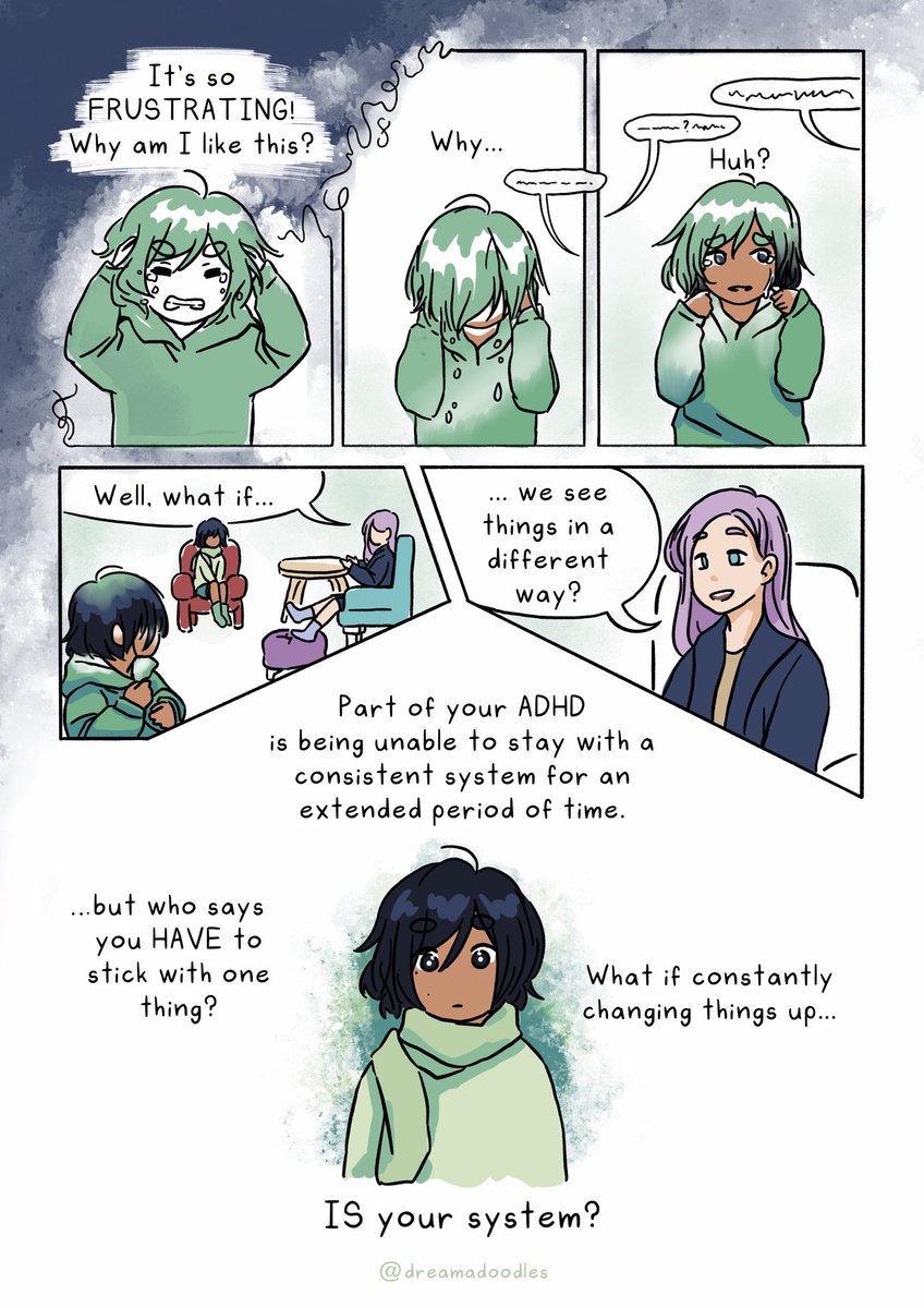 My comic for the #cosmictakeover, which was organized by Pina and Bex! I’m happy to a part of this club of cool beans 💚 - Being inconsistent is just part of having ADHD, but it can have its perks as well as its downfalls.