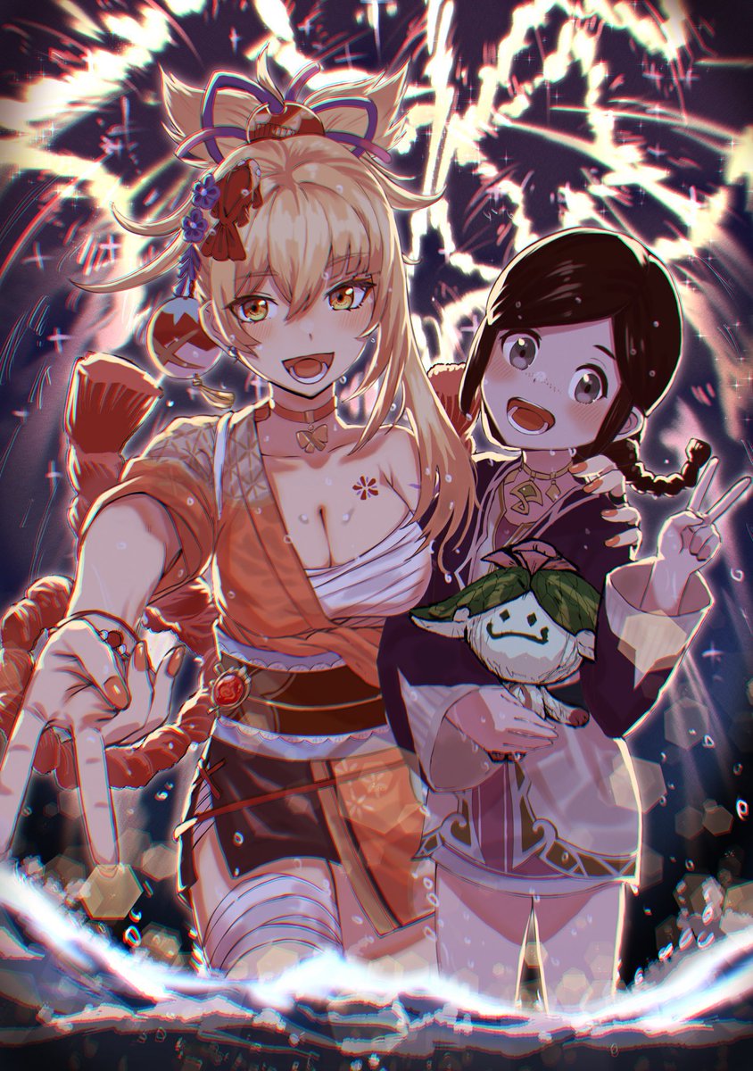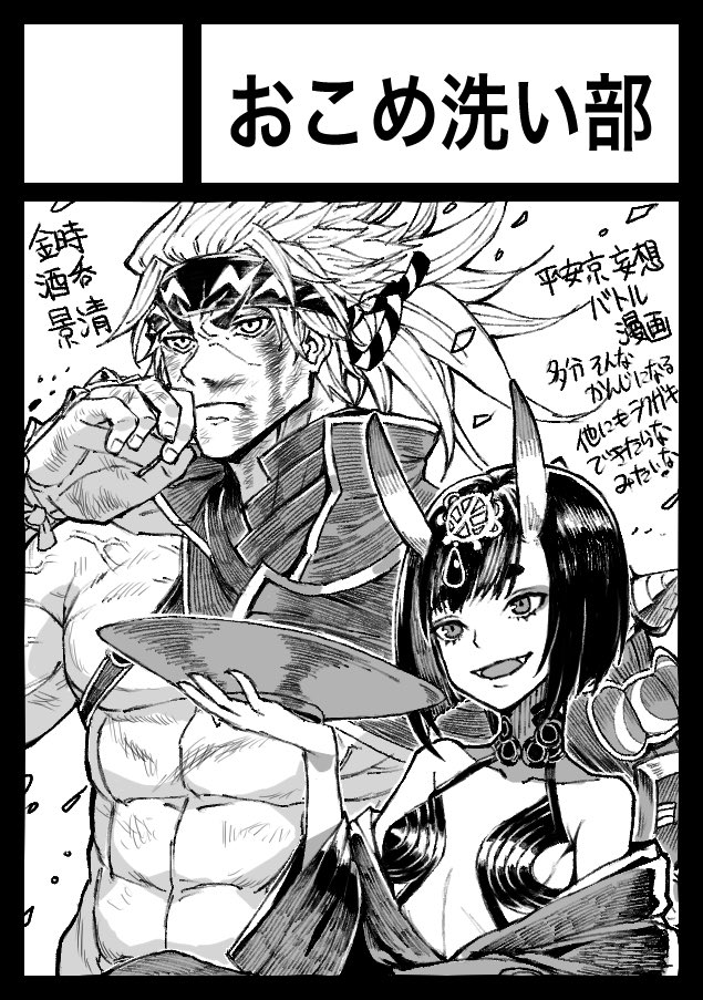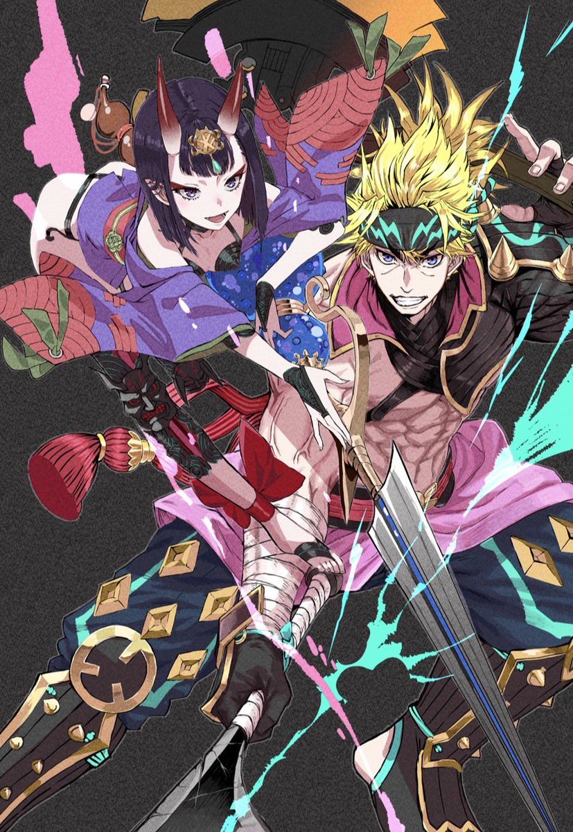 #今年も残りわずかなので今年一番伸びた絵を貼る これかな…?記念すべきC100にサークル初参加として本を出した時の表紙イラスト 全部が初めての事だったから素晴らしい経験になったし金時と酒呑描いてて楽しかった