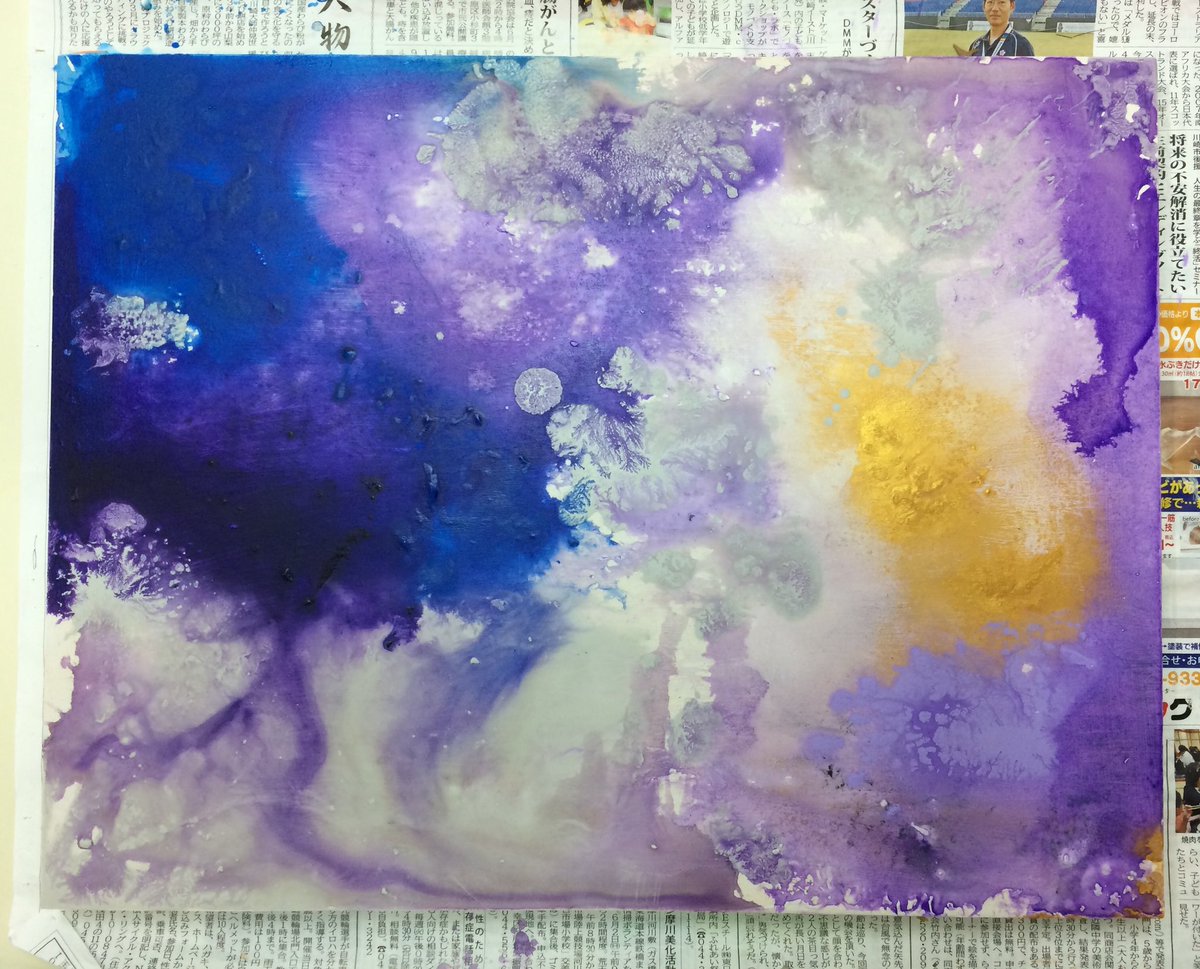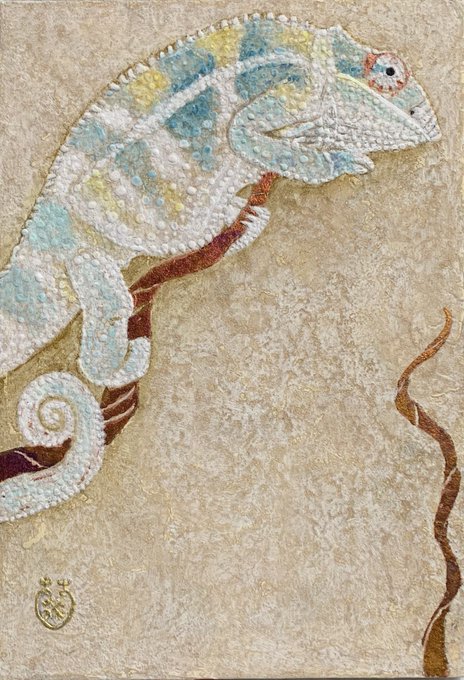 【パンサーカメレオン】 画像の上がキツそうですが、実物はもう少し余白があります。 赤貝箔を使いました。 お時間がありましたら実物をご覧頂けると嬉しいです。 #絵描きさんとつながりたい #榎塾展
