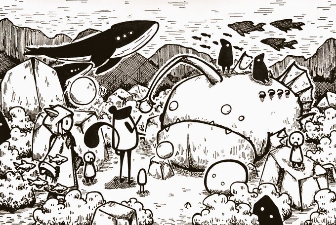 テーマ 群れをつくる幻想と森 #ペン画 #イラスト