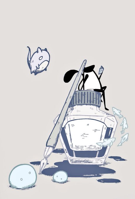 18 205 インクボトルとペン #ゆるいイラスト #イラスト 23/07/29 17:01