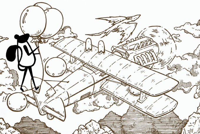13 101 風船から眺める飛行機 #イラスト #アナログ絵 23/08/02 17:02