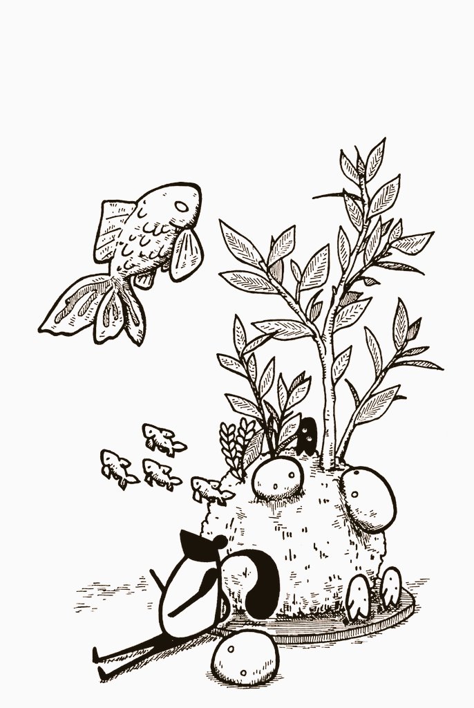 苔玉と小さな幻想たち #アナログ絵 #イラスト