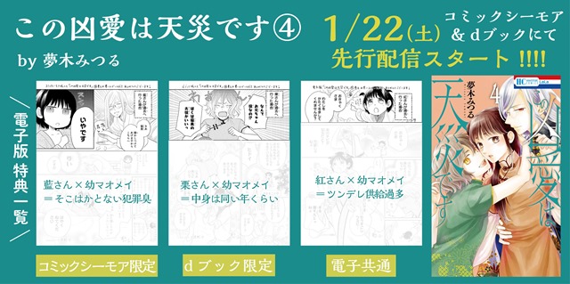 本日発売のLaLa3月号に「この凶愛は天災です」第21話が掲載されています! そしてコミックス4巻がコミックシーモア様とdブック様にて先行配信されています~! よろしくお願いします