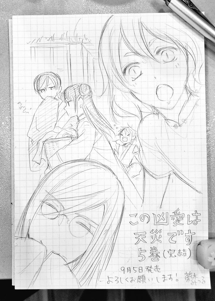 31 202 「この凶愛は天災です」5巻(完結)、本日発売です。 お手に取っていただけたら嬉しいです! まだ里帰り中でお絵描き道具がないので、ラフな宣伝絵で失礼します💦 帰ったらちゃんとしたのを描きます~! 最後まで楽しんでいただけますように…! 22/09/05 16:52