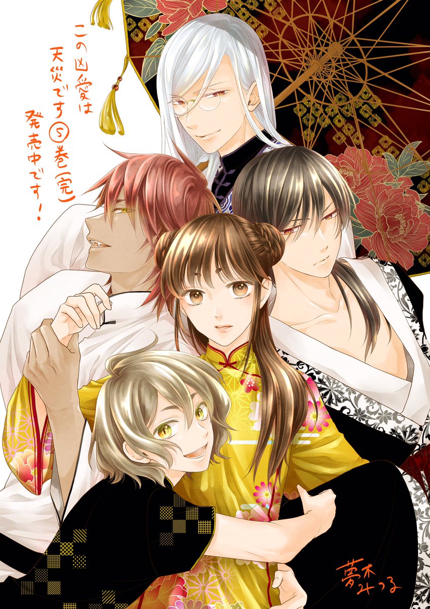 宣伝絵を描いたので改めて。 「この凶愛は天災です」5巻発売中です。 最終巻となります〜! 最後までお付き合いいただけたら嬉しいです…!