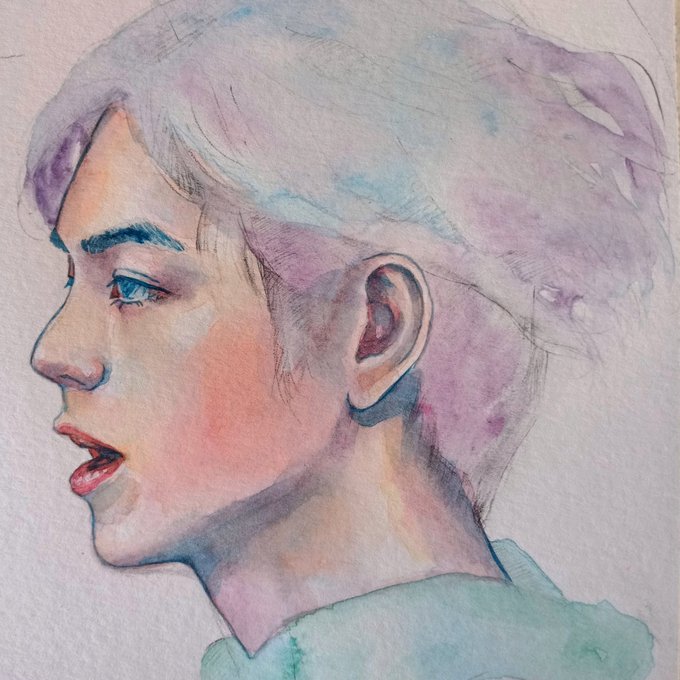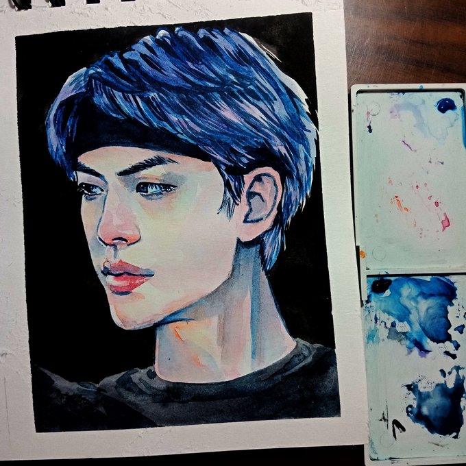 since i have been told to post more here 👉 👈 a lil jinnie, reference by @ALittleBraver92 #BTS #방탄소년단 #진 #JIN #btsfanart #watercolour #그림
