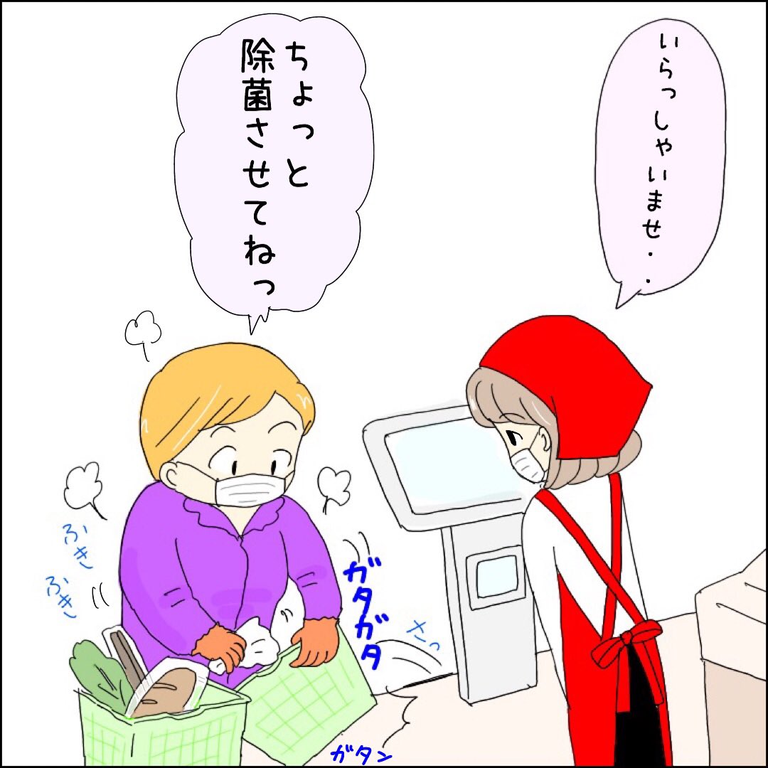 1 48 荒々しすぎて、コントみたいなお客様でした(^◇^;) #漫画 #4コマ漫画 #コミックエッセイ #スーパー #レジ #コロナウイルス対策 20/05/18 20:57