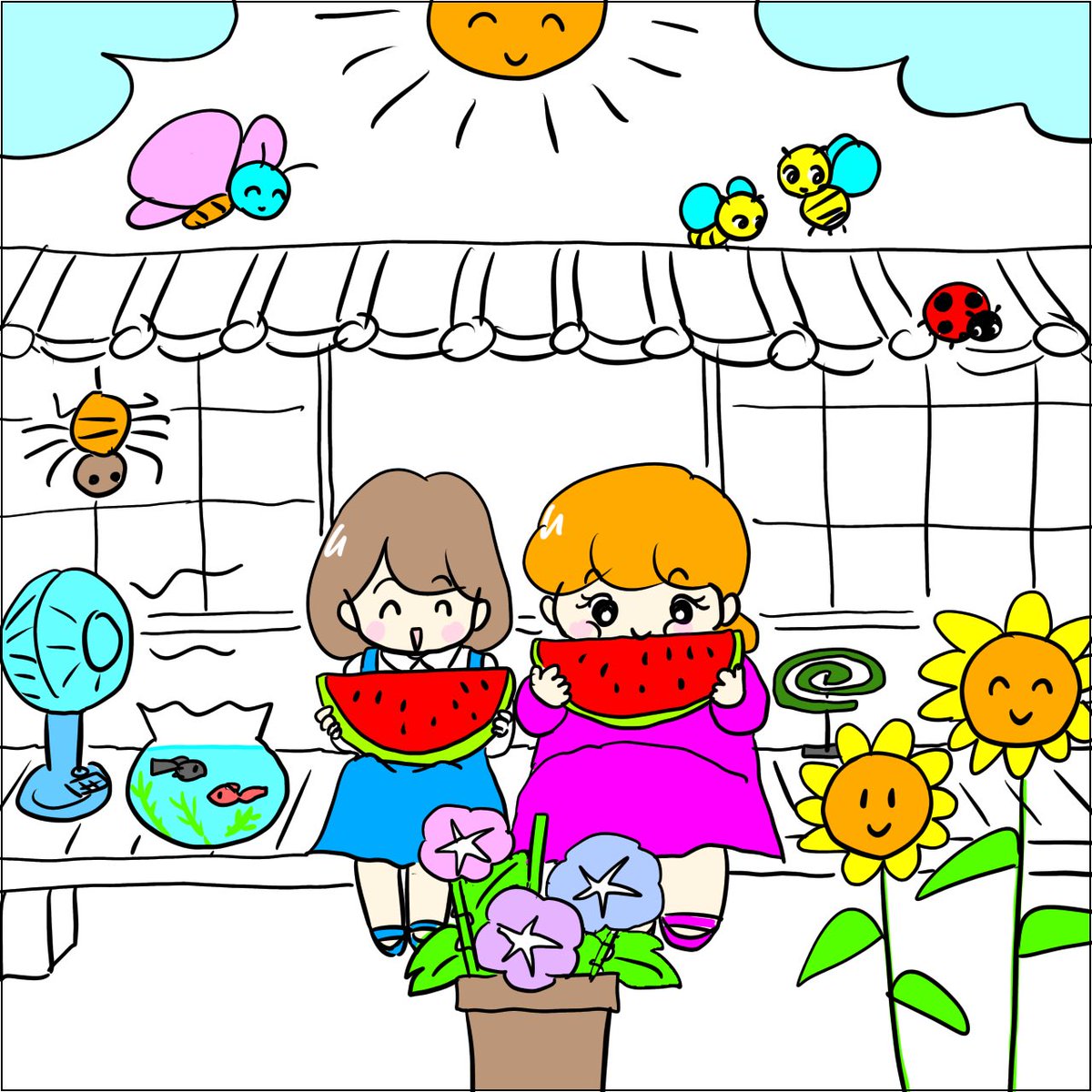 簡単な間違い探しだよ 暇つぶしにどうぞ(╹◡╹) 間違いは8箇所だよ 正解は、ブログにあるけど、夜にこちらにも載せます〜👍 #間違い探し #脳トレ #暇つぶし #イラスト