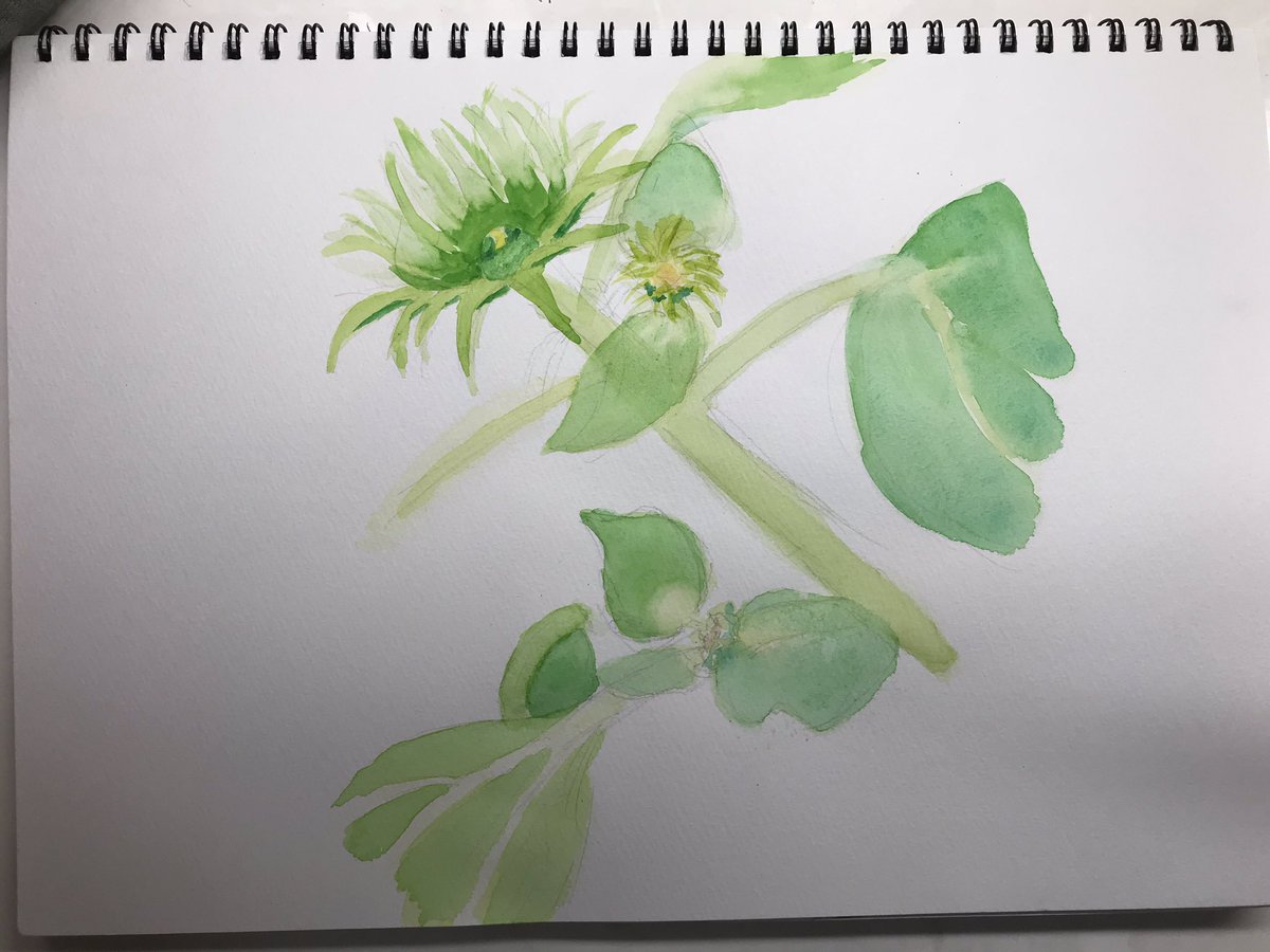 ひまわりのまだ咲いてないものを描いたんぞ #ひまわり #イラスト #水彩 #夏