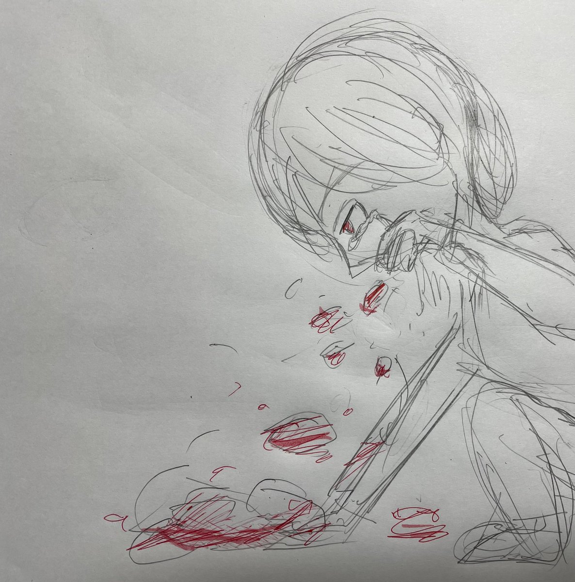 なんでいつも…いつもさ…赤い世界しか見えないの… #イラスト #らくがき #アナログ絵