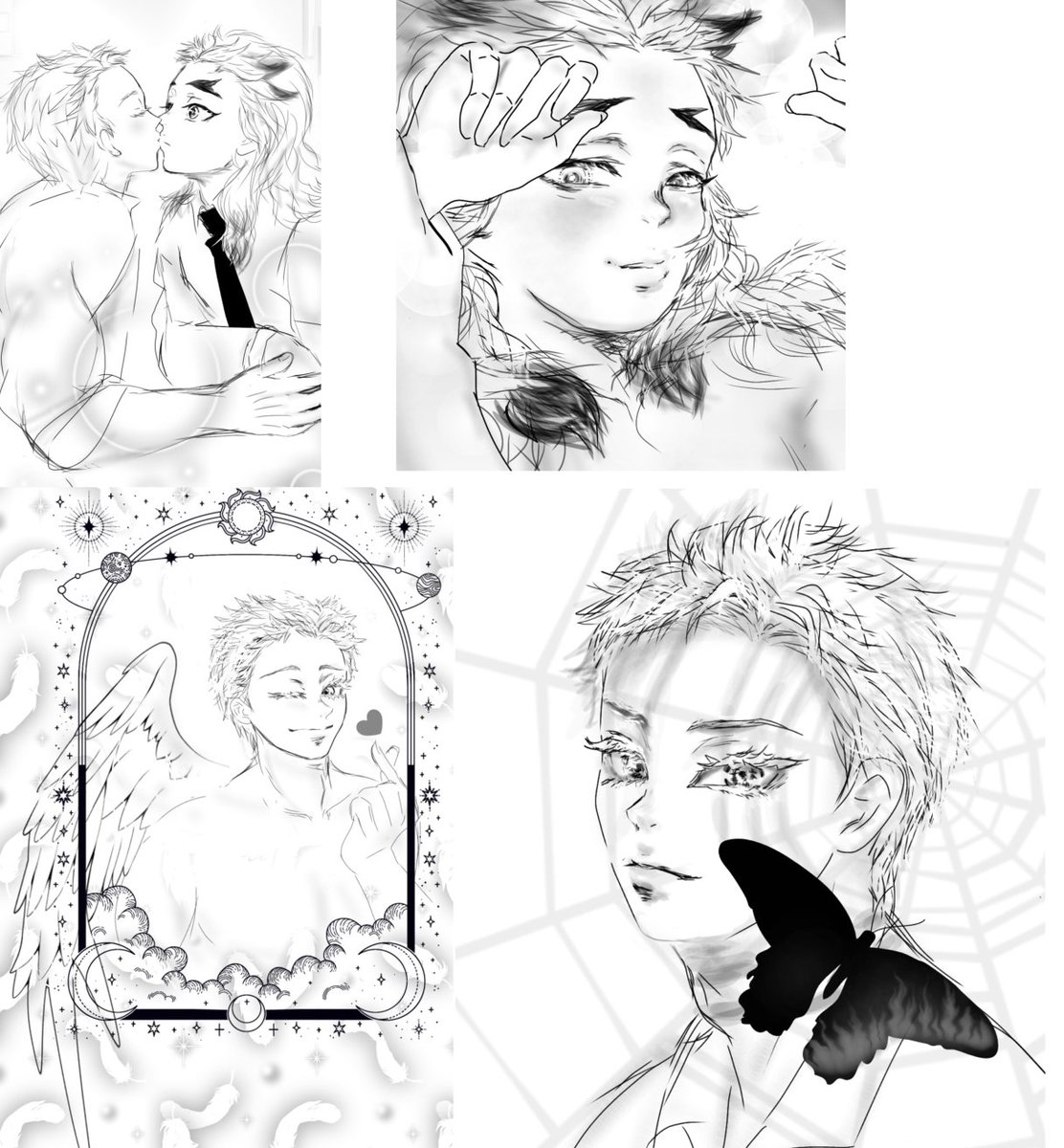 #今月描いた絵を晒そう 前半は元気なくて描く気力がなかなか湧きませんでしたが 絵をまた描くことで凄く元気づけられるのに気が付きました😚🤗💕 1枚目、4枚目は線画アナログ 2枚目、3枚目は線画デジタルです コラボ絵も頑張ったので早く見せれる日がくるとええなぁ