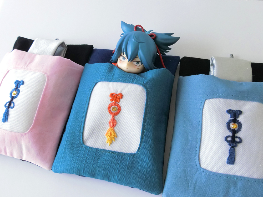 青江の刺繍頑張った所は、なんか立体の石がついてる感じにした所! 組紐部分は、長谷部で鍛えられて、かなり綺麗に刺繍できるようになってきた気がする