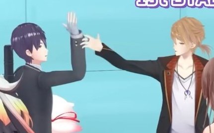 これはハイタッチをしてる場面です 手の位置、目線、✌️の膝は曲がっている ご査収ください